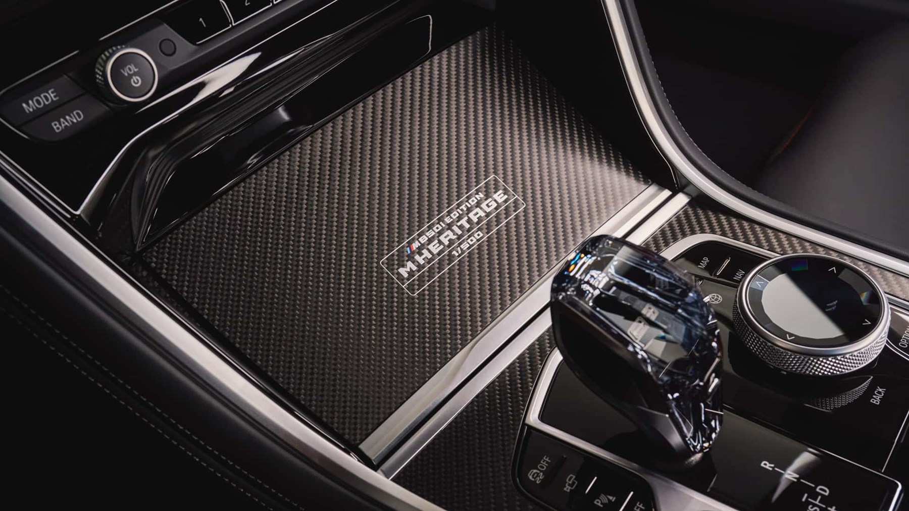 Promjene su vidljive i u unutrašnjosti. M Sport sjedala presvučena su kombinacijom Alcantare i crne Merino kože s dijamantnim uzorkom. Alcantara prekriva i strop, armaturnu ploču te dijelove vrata, dok su ukrasni elementi izrađeni od mat karbonskih vlakana. Cijelu priču zaokružuju M šavovi u tri boje te pločice na pragovima i poklopcu držača za čaše s natpisima "M850i Edition M Heritage" i "1/500".