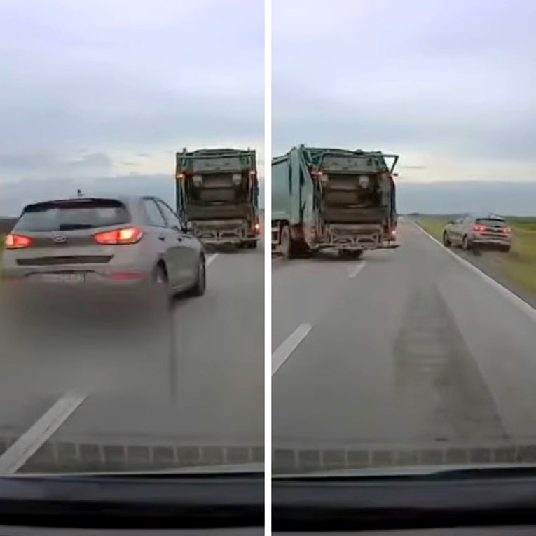 Na snimci koju je objavila Facebook stranica Prometne zgode i nezgode može se vidjeti kako vozač pretječe automobil dok ispred njega kamion za odvoz smeća pokušava skrenuti u sporednu ulicu.