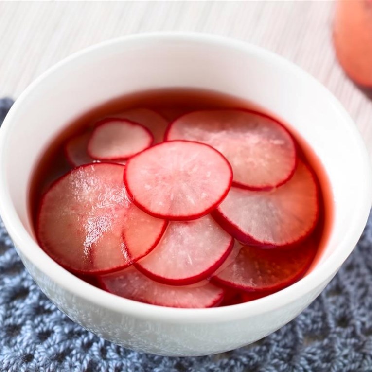 Za kiseljenje će vam trebati jabučni ocat, topla voda, sol i šećer. Sve to promiješajte i miješajte dok se šećer i sol ne otope. Prelijte preko rotkvica u staklenki i zatvorite. Tekućina ih mora prekriti. Po želji dodajte začine, poput papra u zrnu ili lovorovog lista, pa ostavite da rotkvice odstoje na sobnoj temperaturi oko sat vremena.