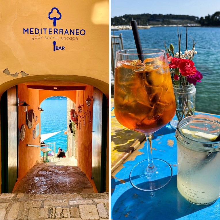 Prolazeći ulicom svetog Križa, s lijeve strane smo naišli na "bar s najljepšim pogledom". Zapravo, prvo smo naišli na pogled, a tek smo onda otkrili bar. Radi se o Mediterraneu, popularnom rovinjskom cocktail baru za čije se mjesto (barem na sunčan dan) čeka u redu.