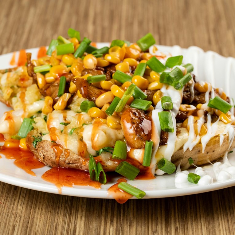 Loaded potato iz SAD-a dolazi sa spektrom ludih nadjeva. Cheddar sir, kiselo vrhnje, slanina, mladi luk, chili, pulled pork…sve što možete zamisliti, i to - sve zajedno. Krumpir je više nego prilog: postaje obrok za sebe, mastan, zasitan i potpuno američki.