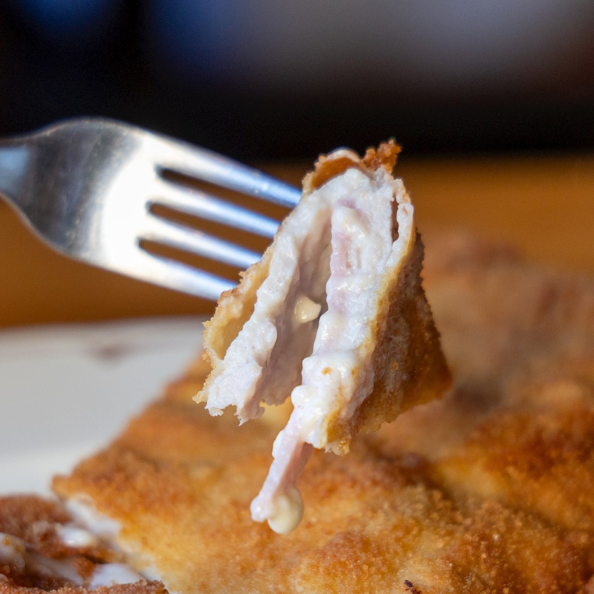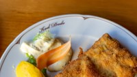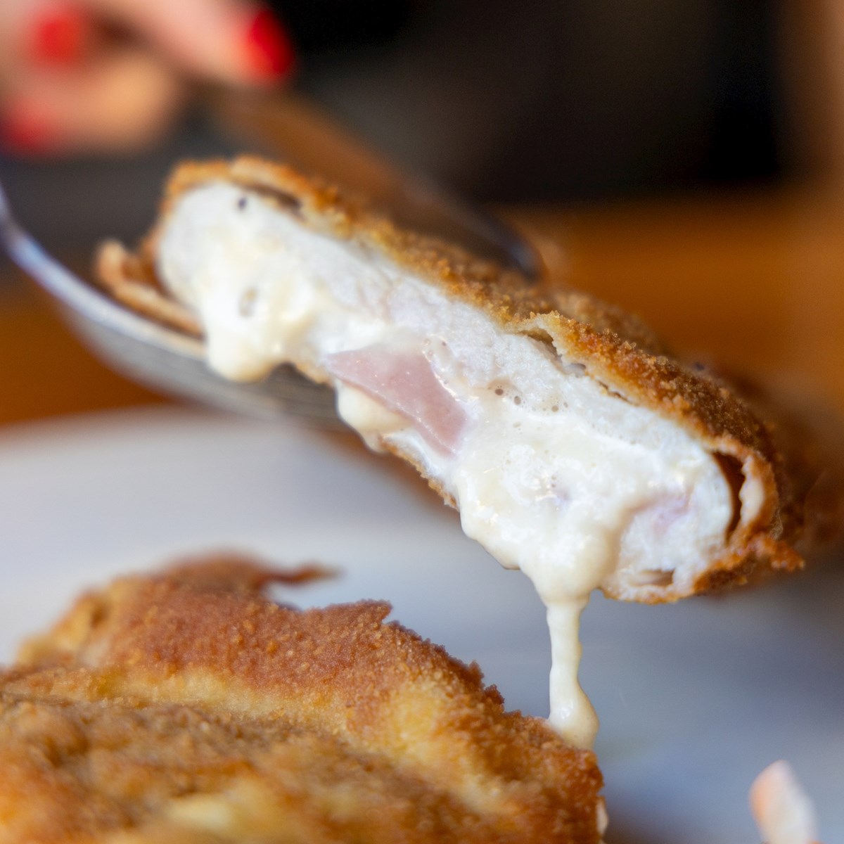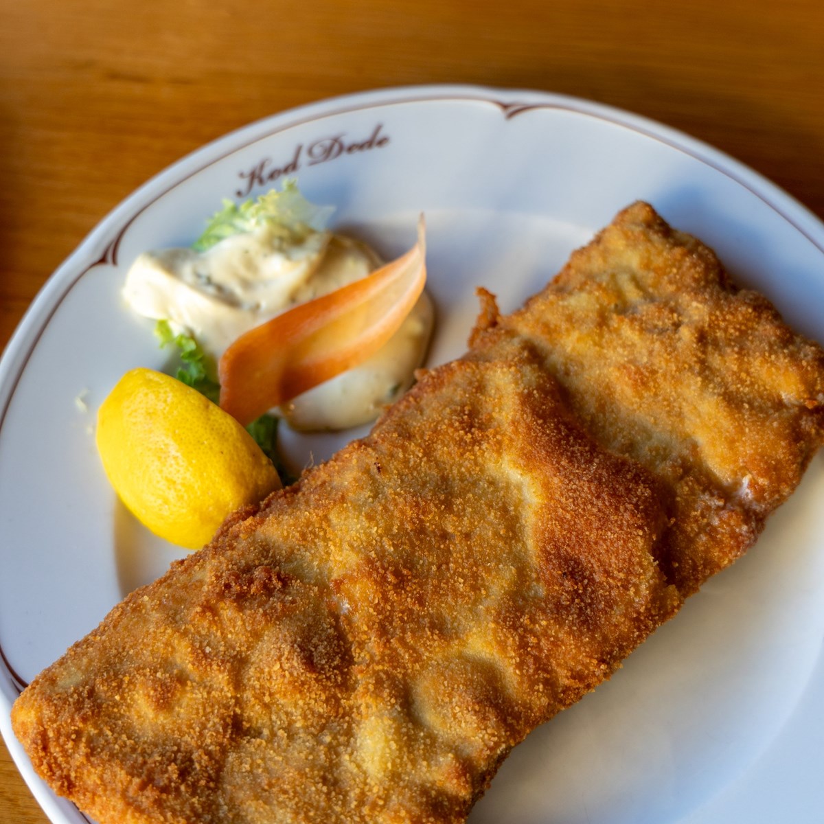 Mi smo probali zagrebački odrezak za 11 eura, koji je bio savršeno hrskav izvana i sočan iznutra, s obilnim punjenjem od šunke i sira. Također smo naručili i pržene lignje s krumpirićima za 13 eura te zelenu salatu za 3 eura.