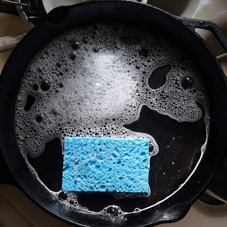 Iako se vjeruje da sapun uništava zaštitni sloj na posuđu od lijevanog željeza, mnogi profesionalci ga koriste bez problema. Food blogerica Marissa Stevens svoju tavu redovito pere deterdžentom - i nema nikakvih problema.