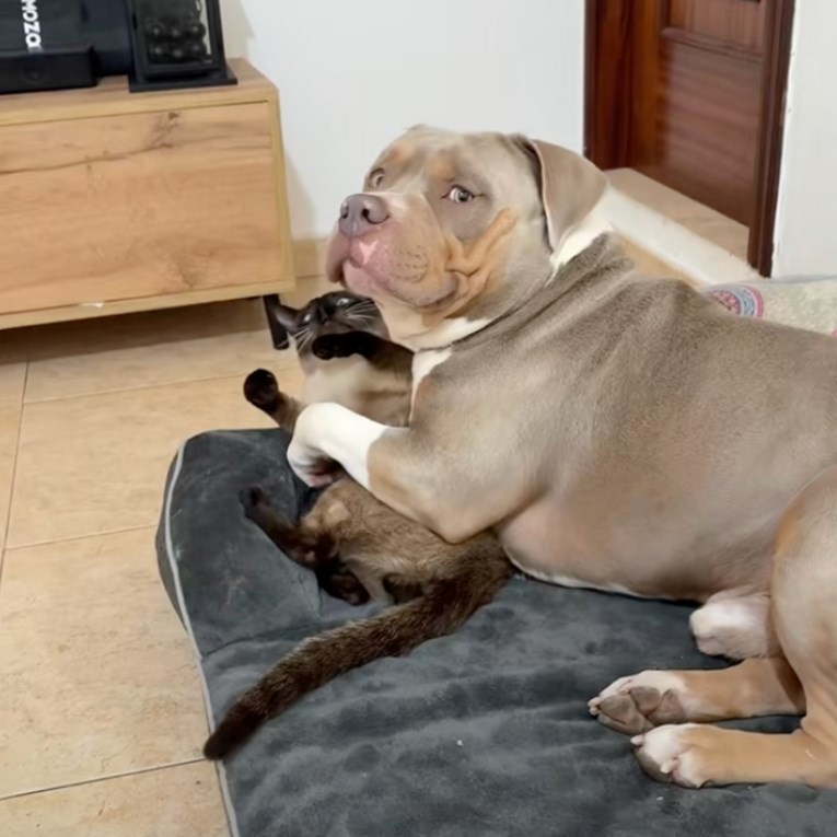 Američki bully pokušao prisiliti mačka na maženje, prizor je neprocjenjiv