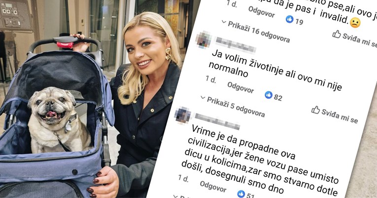 "Bože, što je ovo, psi se voze u kolicima umjesto djece", "Vrijeme je da propadne ova civilizacija jer žene voze pse umjesto djece u kolicima. Zar smo stvarno dotle došli, dosegnuli smo dno", "Volim životinje, ali ovo mi nije normalno", "Ovo je previše, pa da je pas i invalid", "Poremećeno", nanizali su se komentari.