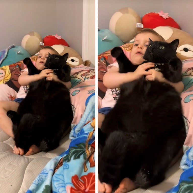 HANNAH ANGEL je na svom TikTok profilu podijelila smiješan trenutak između svoje kćeri i crnog mačka. Kada je djevojčica jednom gledala televiziju, legla je i na sebe stavila mačka te ga zagrlila, a on se nikako nije mogao izvući iz njezina zagrljaja.