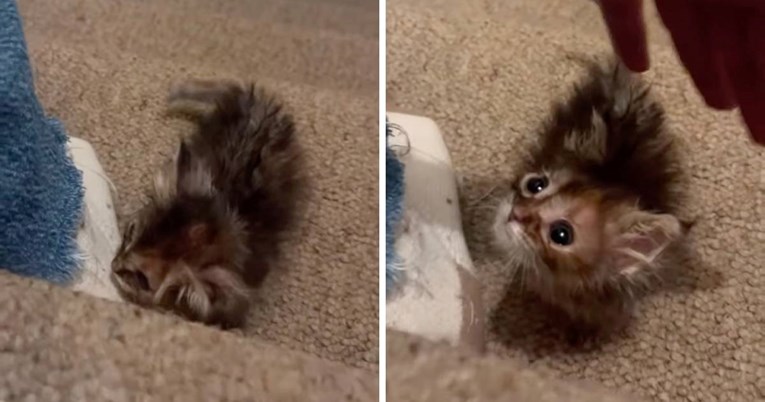 Internet je opsjednut sićušnim mačićem koji se pokušava penjati stepenicama