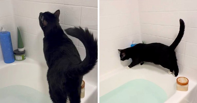 Mačak se popeo na kadu i slučajno upao u vodu, video je urnebesan