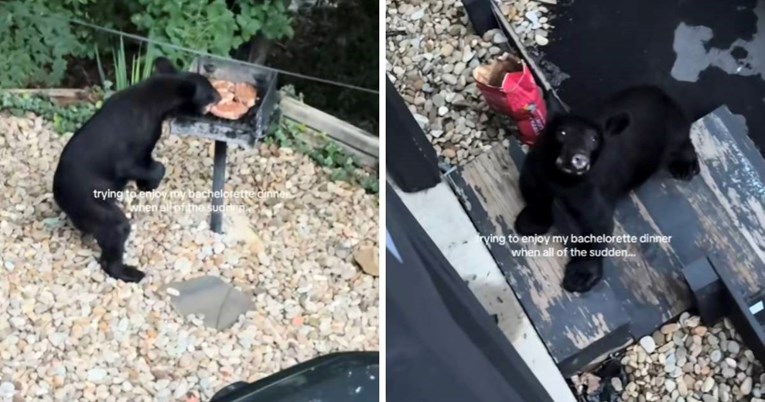 Buduća mladenka, na TikToku poznata kao @blendedpeanut, 24. srpnja objavila je video koji je brzo postao viralan i skupio više od milijun pregleda. Na snimci se vidi mladi crni medvjed kako se oprezno približava kolibi, očito privučen mirisima s roštilja. Iako su djevojke ostale na sigurnoj udaljenosti, ostale su u šoku kada se životinja bez imalo ustručavanja poslužila njihovom večerom.