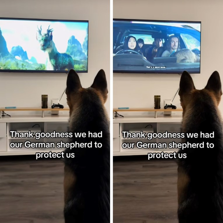 "Hvala nebesima što imamo našeg njemačkog ovčara da nas štiti", našalili su se njegovi vlasnici koji su video podijelili na TikToku. U opisu videozapisa su dodali: "Nisu mu se svidjela magična stvorenja", a simpatičan videozapis je od objave pogledan više od 400 tisuća puta.