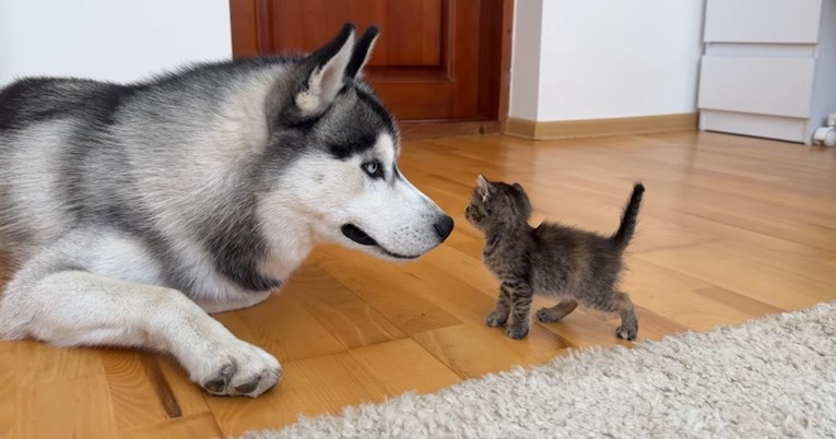 Nježni haski je u samo nekoliko minuta stekao povjerenje uplašenog mačića