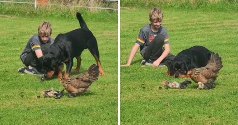 Nježni rotvajler upoznao je piliće i odmah preuzeo ulogu zaštitnika