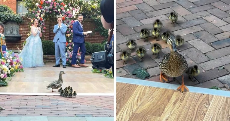 Kada je mladi par počeo izgovarati zavjete, "uljezi" su odlučili napraviti svoj veliki ulazak. Bez imalo oklijevanja, patka i pačići prošetali su stazom kojom su netom prije prošli mladenka i mladoženja. Osmijesi su odmah preplavili lica gostiju, jer ovakvu scenu mogli biste očekivati samo u nekoj romantičnoj komediji.