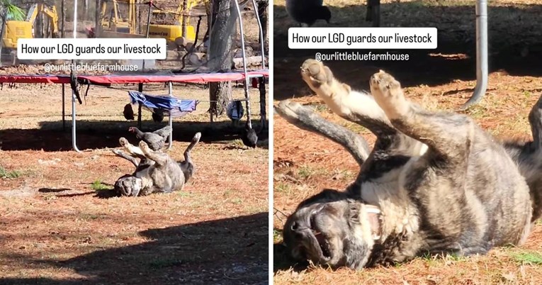 Snimka koja je prošli tjedan podijeljena na Instagram profilu @ourlittlebluefarmhouse prikazuje psa zvanog Smokey Bear koji bezbrižno leži na leđima, potpuno prepušten uživanju u suncu, umjesto da pazi na životinje s farme.