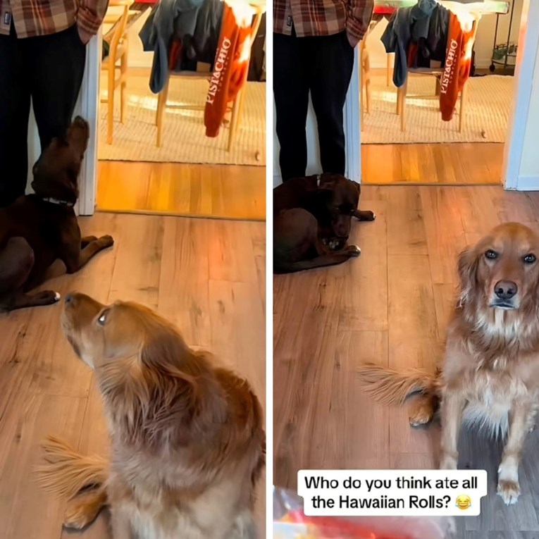 Vlasnica labradora Shelly podijelila je na TikToku snimku na kojoj pokušava otkriti tko je kriv za nestanak vrećice slatkih peciva. Sumnja je pala na njezina dva psa – labradora i zlatnog retrivera – no čim je vlasnica pokazala praznu vrećicu, postalo je jasno tko je glavni osumnjičeni. Labrador se polako povukao, izbjegavao pogled i okrenuo se prema zidu, kao da se nada da će izbjeći posljedice.