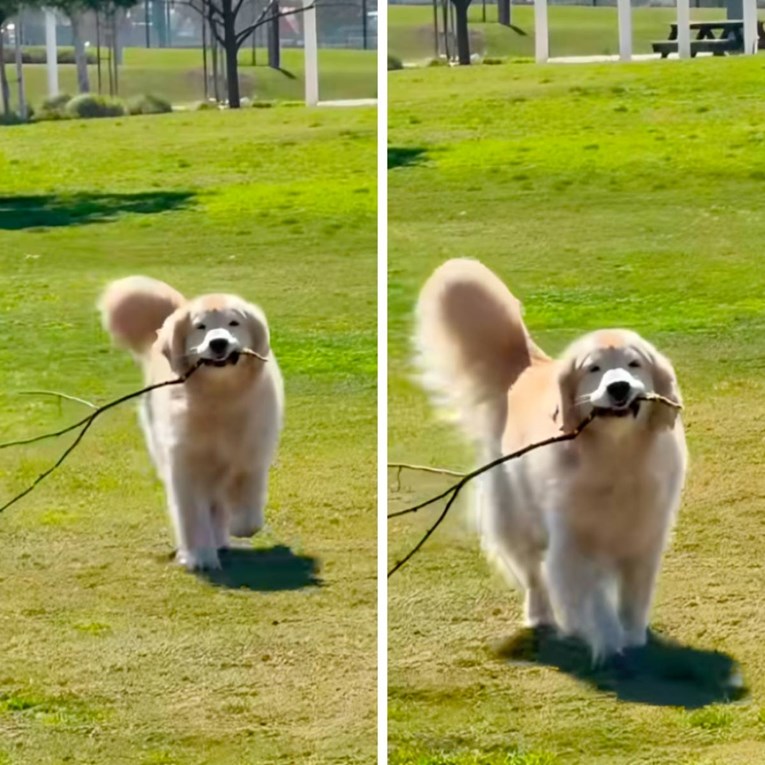 VIDEOZAPIS slatkog zlatnog retrivera Mauija mnogim korisnicima TikToka izmamio je osmijeh na lice. Mauijeva vlasnica podijelila je simpatičan prizor kada se njezin ljubimac igrao na livadi i trenutak kada je, sav sretan i ponosan, trčkarao prema njoj noseći granu u ustima.