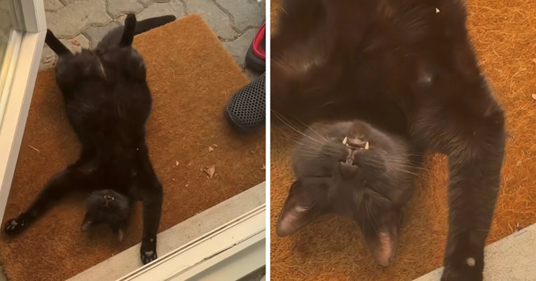CRNI mačak Gustav nasmijao je svoje vlasnike, ali i milijune korisnika TikToka videozapisom svojeg spavanja. Njegovi su vlasnici prije nekoliko dana na Gustavovu profilu objavili video kako su ga jedno jutro našli kako spava ispred vrata, a prizor je i više nego neobičan.
