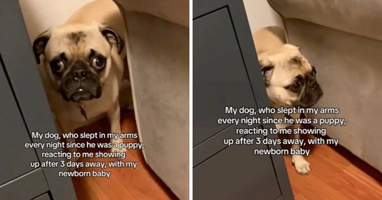 Gus nije mogao sakriti osjećaje, njegova zbunjenost i povrijeđenost bili su gotovo opipljivi. Iako je riječ o dolasku novog člana obitelji, mops je to doživio kao čin izdaje. U viralnom videu koji je vlasnica podijelila prije četiri dana, Gus ju je promatrao kao da je potpuno zaboravio sve zajedničke trenutke koje su dijelili otkad je bio štene. Umjesto uobičajenog mahanja repom i veselog skakanja, razočarani mops se sakrio iza kauča.