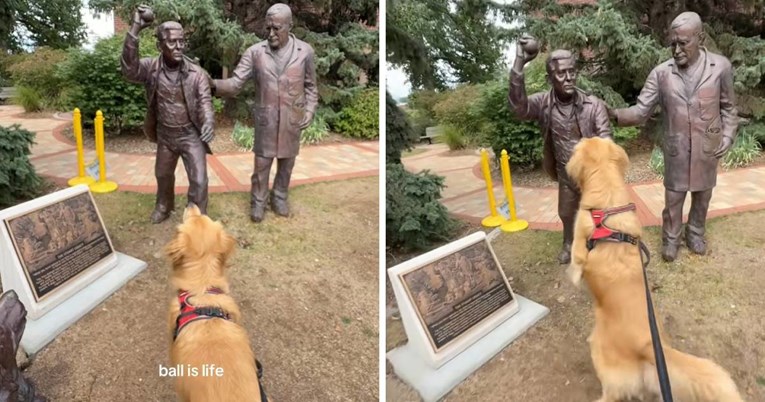 Prizor na snimci objavljenoj na TikTok profilu @twogoldenleos, istovremeno nasmijava i topi srca. Naime zlatni retriver stoji ispred kipa koji drži loptu u pozi za bacanje. Iako lopta ne dolazi, retriver ne gubi vjeru i strpljivo čeka.