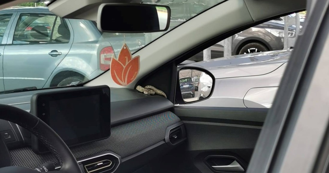 NEOBIČNA situacija zatekla je danas stanovnike Buja, kada je u jednom osobnom automobilu otkrivena zmija. Vozač je uočio životinju smještenu uz prednji lijevi stup automobila, skrivenu između komandne ploče i bočnog prozora, te je odmah alarmirao nadležne službe.