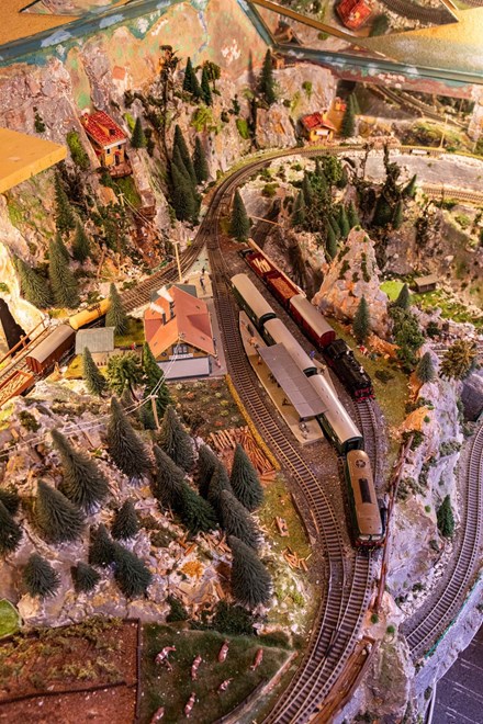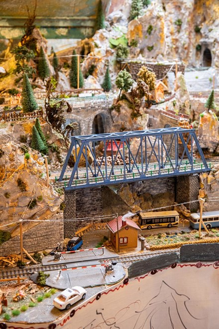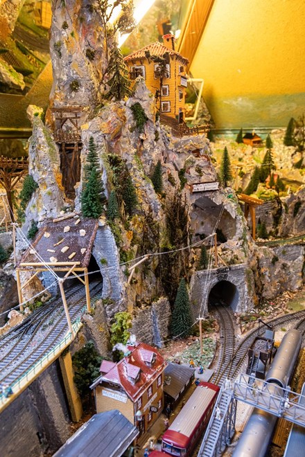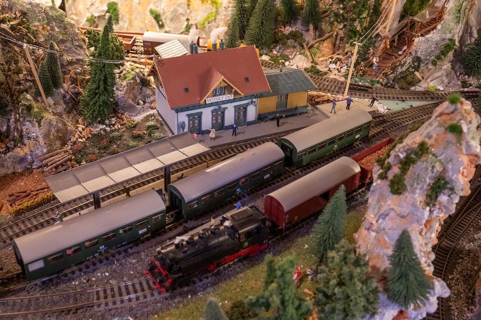 Na maketi se izmjenjuju planine, serpentine i stanice s autentičnim konavoskim nazivima. Brdoviti krajolik proizlazi iz Perine mašte, ali nosi stvarne uspomene na davna vremena kada su kroz Konavle odjekivali zvižduci parnjača. Vlakove, vagone i tračnice kupio je, ali sve drugo je izradio sam.