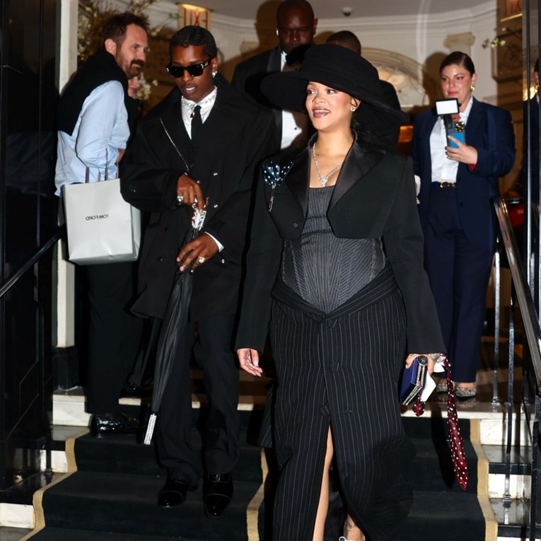 Podsjetimo, Rihanna je na crvenom tepihu Met Gale pokazala trudnički trbuh. Nosila je skraćenu sako-jaknu Marca Jacobsa, vuneni korzet i suknju s prugama koja je imala duboki prorez do bedra, a oko struka je imala zavezanu još jednu jaknu čime je svoj zaobljeni trbuh stavila u prvi plan.