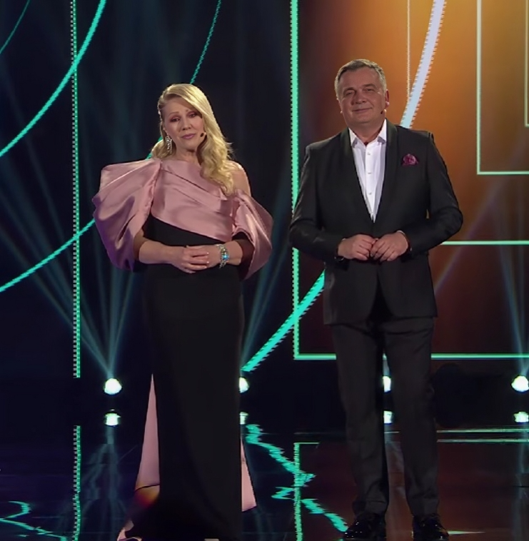 Barbara je na pozornicu izašla u crnoj haljini s rozim detaljem, a šminka joj je usklađena s outfitom. Duško se u finalnoj večeri pojavio u crnom odijelu i bijeloj košulji.