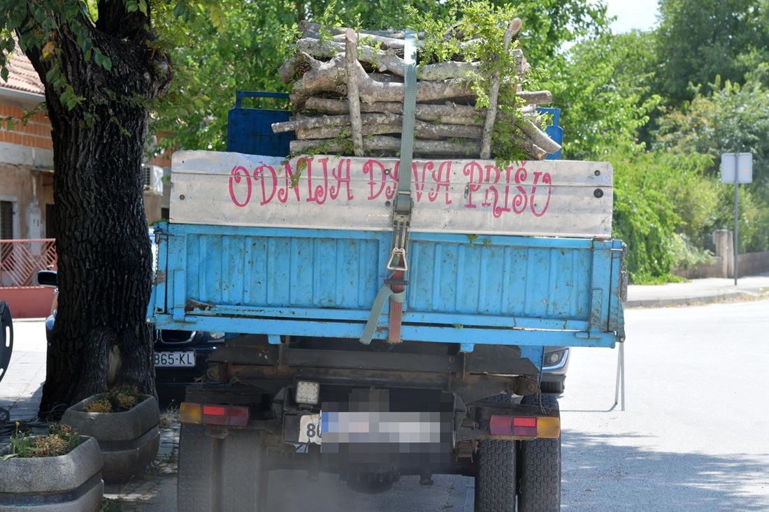 U NASELJU Oklaj, smještenom u Šibensko-kninskoj županiji, zabilježena je zanimljiva scena koja je privukla pažnju prolaznika. Na kamionu koji prevozi drva istaknut je natpis "Odnia đava prišu", napisan na lokalnom dijalektu.