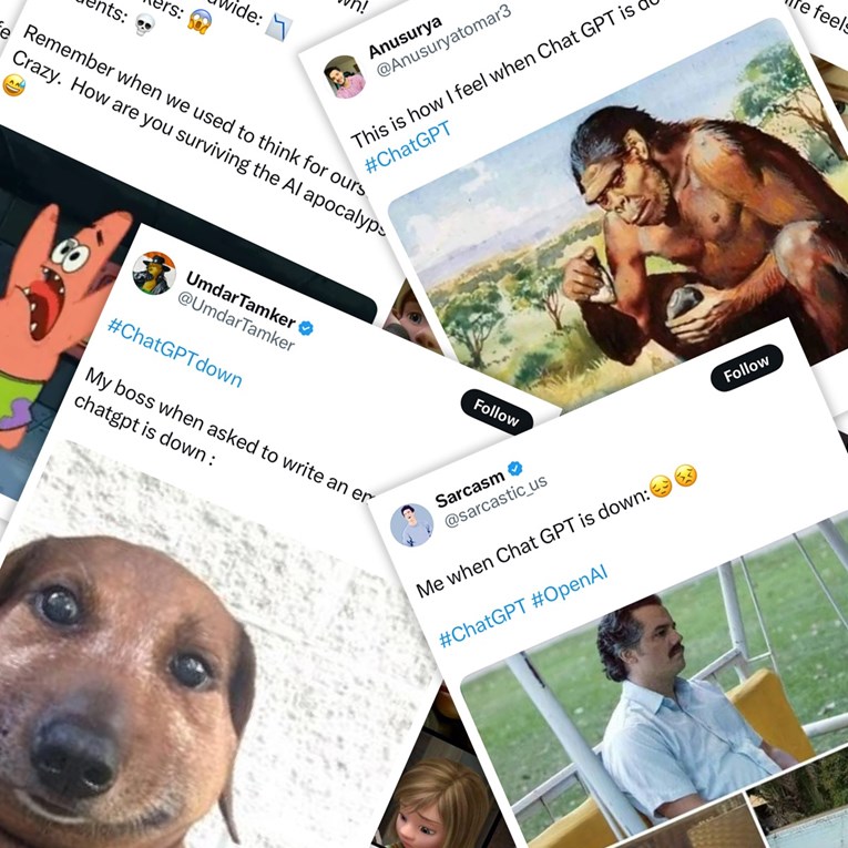 Brojni ljudi su sada ljuti i frustrirani jer ne mogu koristiti alat koji je bio ključan za njihov rad ili učenje. No društvena mreža X preplavljena je urnebesnim memovima koji opisuju što se događa u svijetu nakon pada ChatGPT-a.