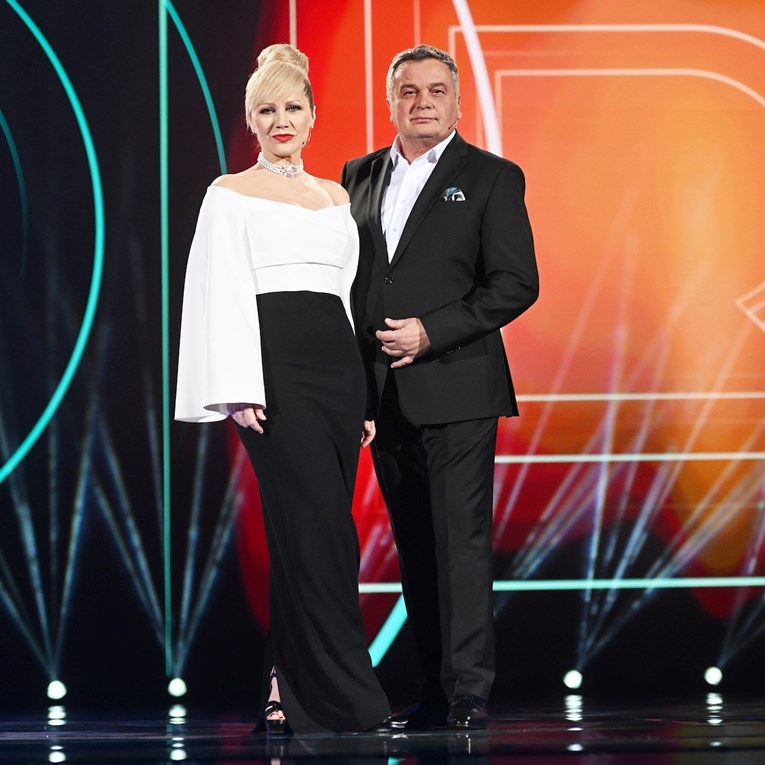 BARBARA Kolar u drugom polufinalu Dore izašla je na pozornicu u crno-bijeloj haljini otvorenih ramena. Njen kolega Duško Ćurlić ovog puta obukao je bijelu košulju umjesto crne.