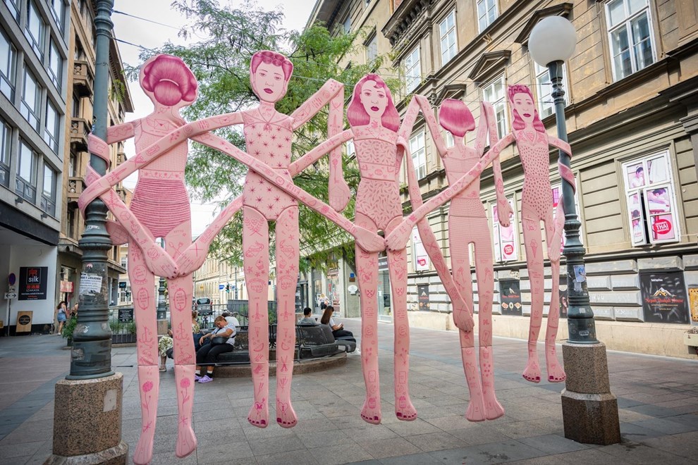 Njihove isprepletene ruke podsjećaju na važnost ženskog zajedništva, a na njihovim su tijelima ispisane tetovaže s porukama solidarnosti. "Nijedna figura nije sama, nego se teret koji se prenosi kroz dane lakše podnijeti kada imaš žensku ekipu da ti pomogne", rekla je umjetnica za Hinu.