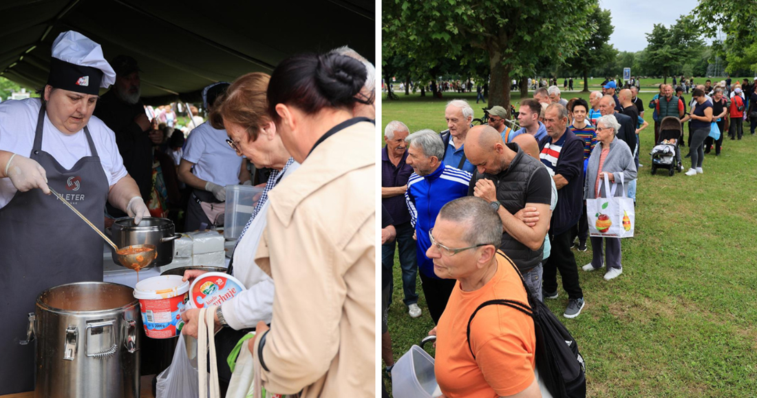POVODOM Dana državnosti, na zagrebačkom Jarunu danas je održana podjela graha. Podjela je počela u podne, a redovi su bili dugi te su brojni građani strpljivo čekali na svoj tanjur.