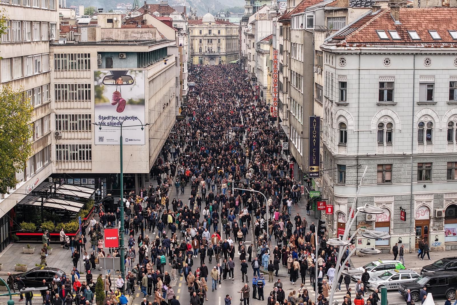 Fotografi su uspjeli snimiti nekoliko fotografija povorke iz zraka (možete ih pogledati u galeriji). Prizori u Sarajevu danas su bili nestvarni.