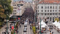 NAKON komemoracije i dženaze Halidu Bešliću, tisuće ljudi krenule su u povorci prema gradskom groblju Bare gdje će pjevač biti pokopan.