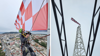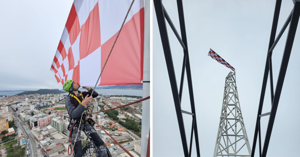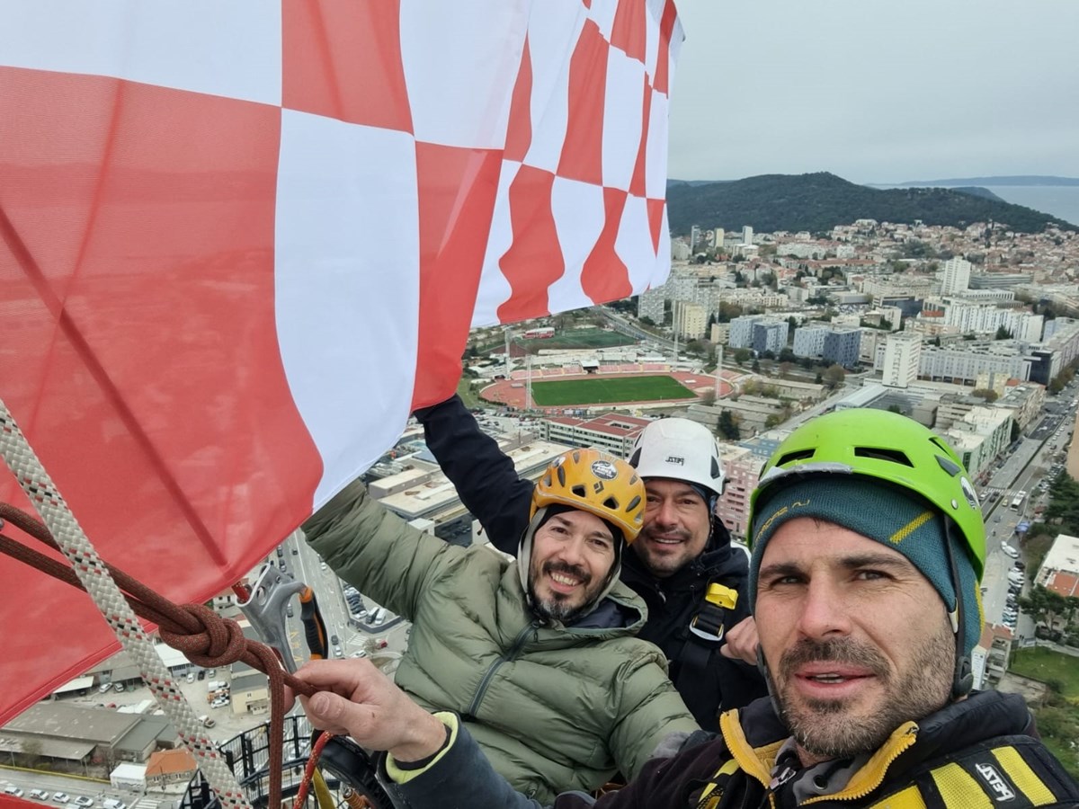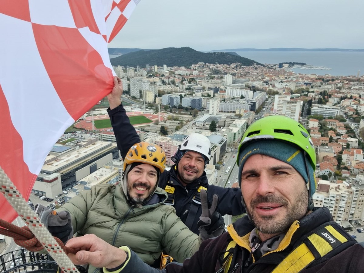 Zastavu su postavile ekipe iz firmi Asap i Iris Adventures, i to u zadnji tren. Čim su se spustili sa 135 metara visokog nebodera, nad Splitom se dogodio prolom oblaka. Poslali su nam fotografije postavljanja zastave, a sve možete pogledati u galeriji.
