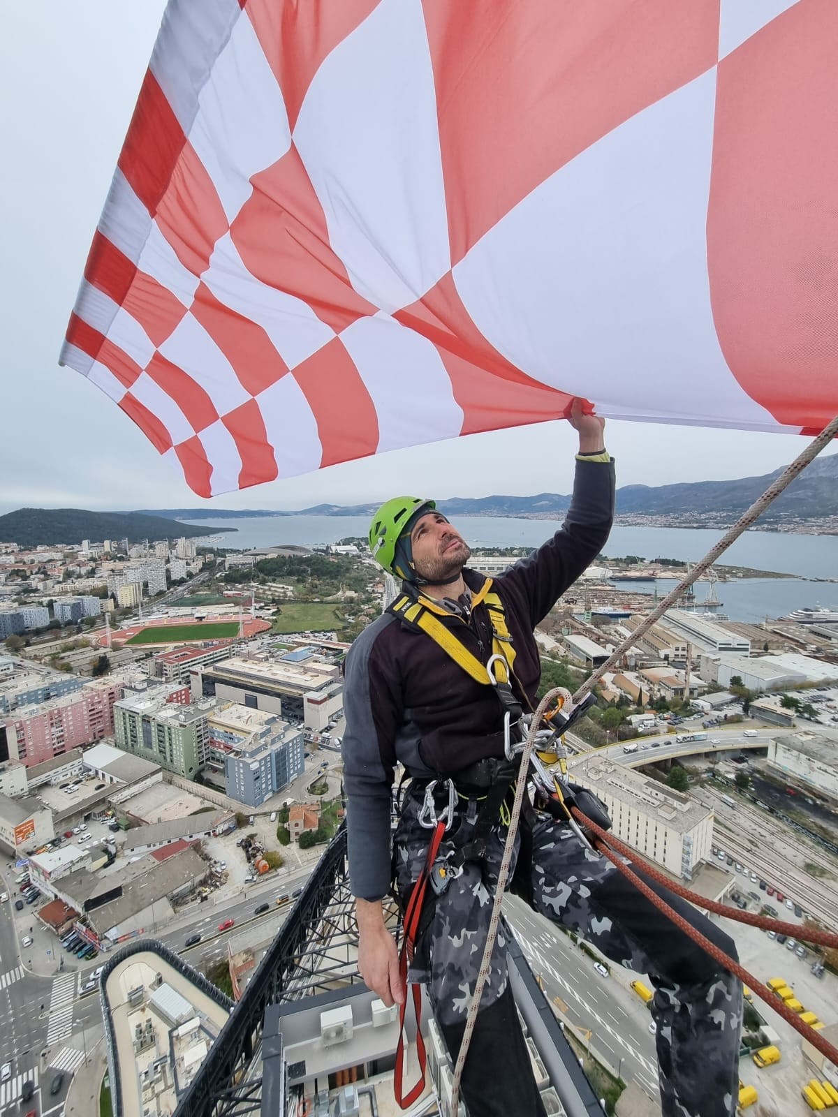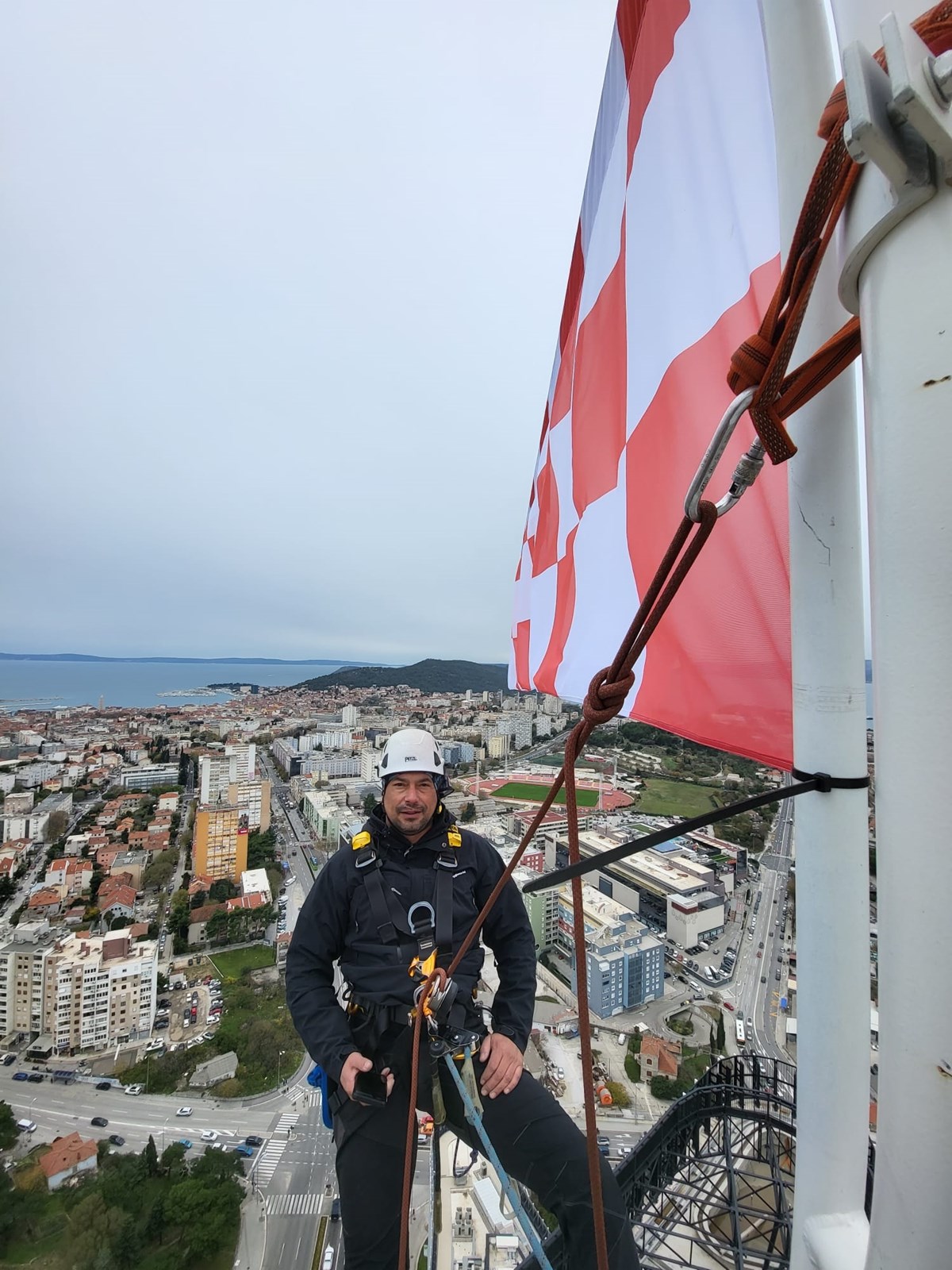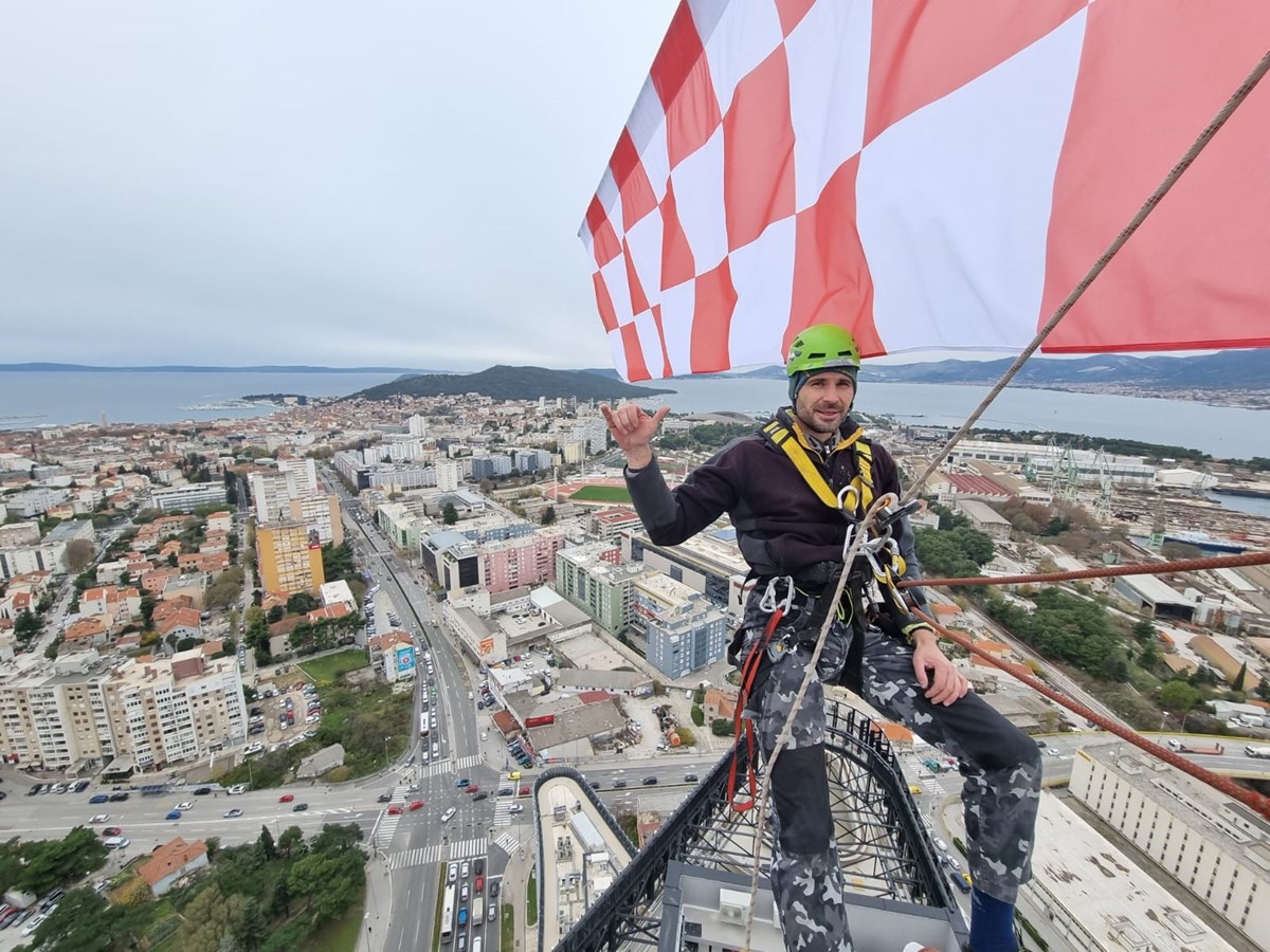 Zastavu su postavile ekipe iz firmi Asap i Iris Adventures, i to u zadnji tren. Čim su se spustili sa 135 metara visokog nebodera, nad Splitom se dogodio prolom oblaka. Poslali su nam fotografije postavljanja zastave, a sve možete pogledati u galeriji.