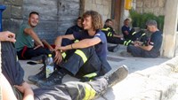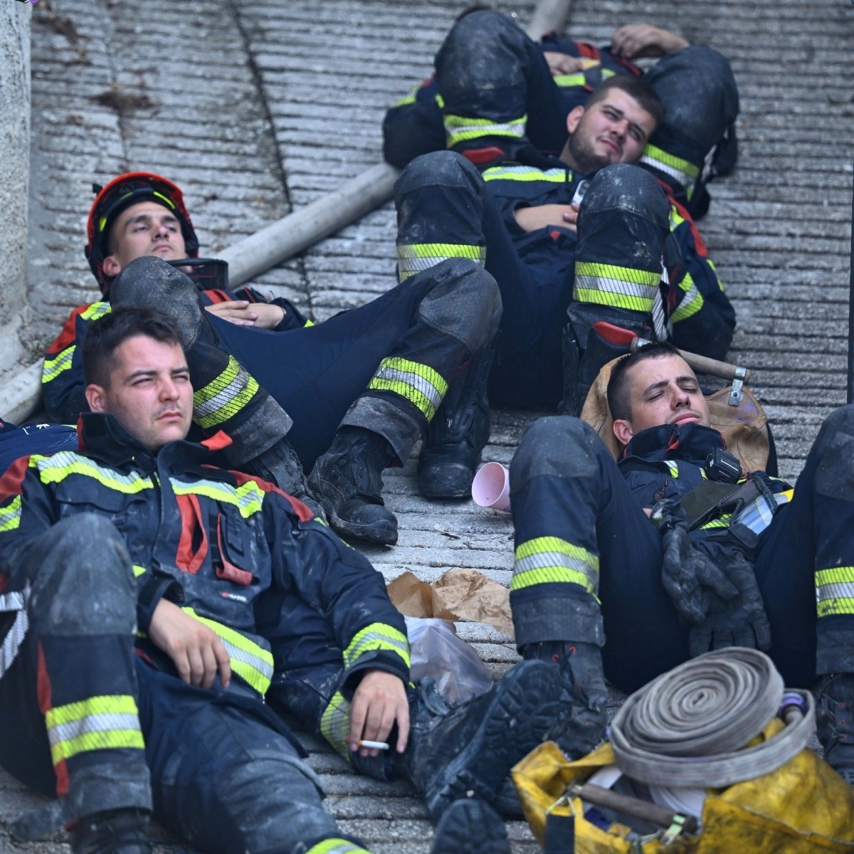 POŽAR kod Jesenica izbio je noćas u 2:54 i još ga uvijek gasi više od 100 vatrogasaca s 50 vozila. Neki od njih na požarištu su bili noćas, a sad je stigla zamjena pa su se uspjeli malo odmoriti. Dirljive prizore vatrogasaca koji su se satima borili s vatrenom buktinjom zabilježili su fotografi.