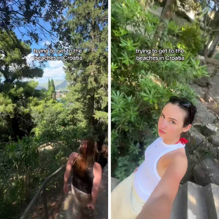 Ashtin je morala proći puno stepenica (ali nizbrdo) kako bi došla do plaže. "Pokušaj dolaska do plaže u Hrvatskoj", napisala je na snimci. Iskoristila je viralni zvuk gdje žena viče "gdje je plaža". Na kraju je tiktokerica uspjela doći do plaže.