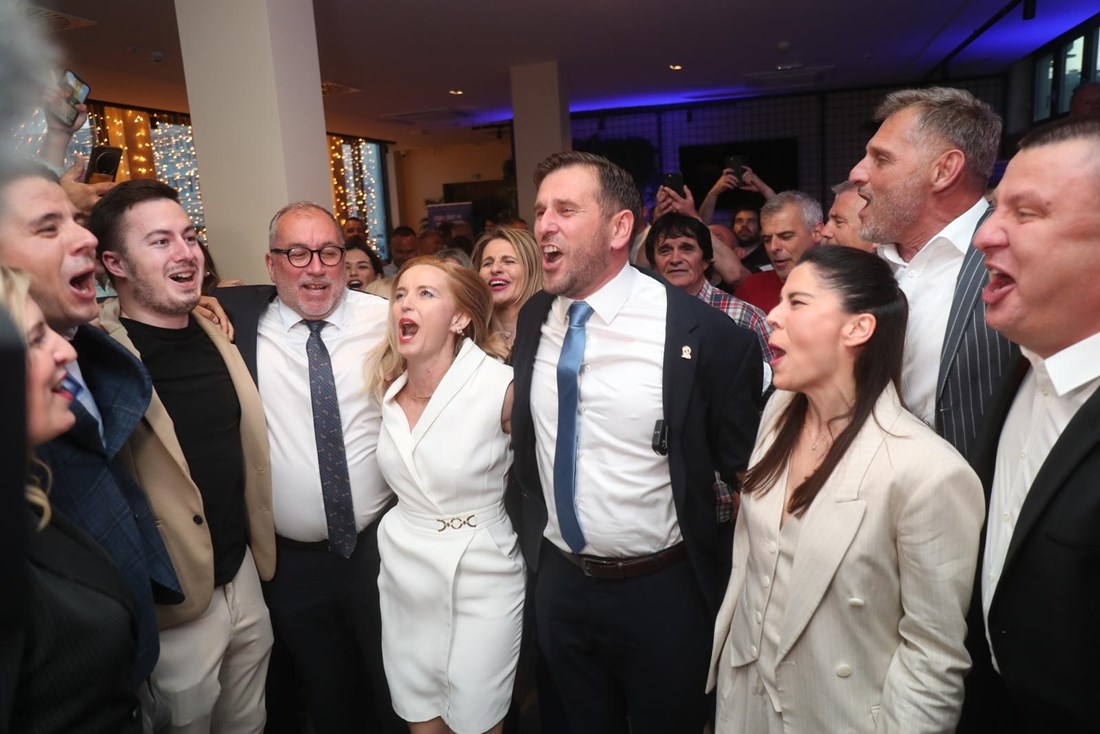 HDZ-OVCI u Splitu su pobjedu Šute i Bobana proslavili uz torte i pjesmu. Pjevali su Dalmacijo od kamena, pjesmu Đanija Stipaničeva, te razrezali torte.
