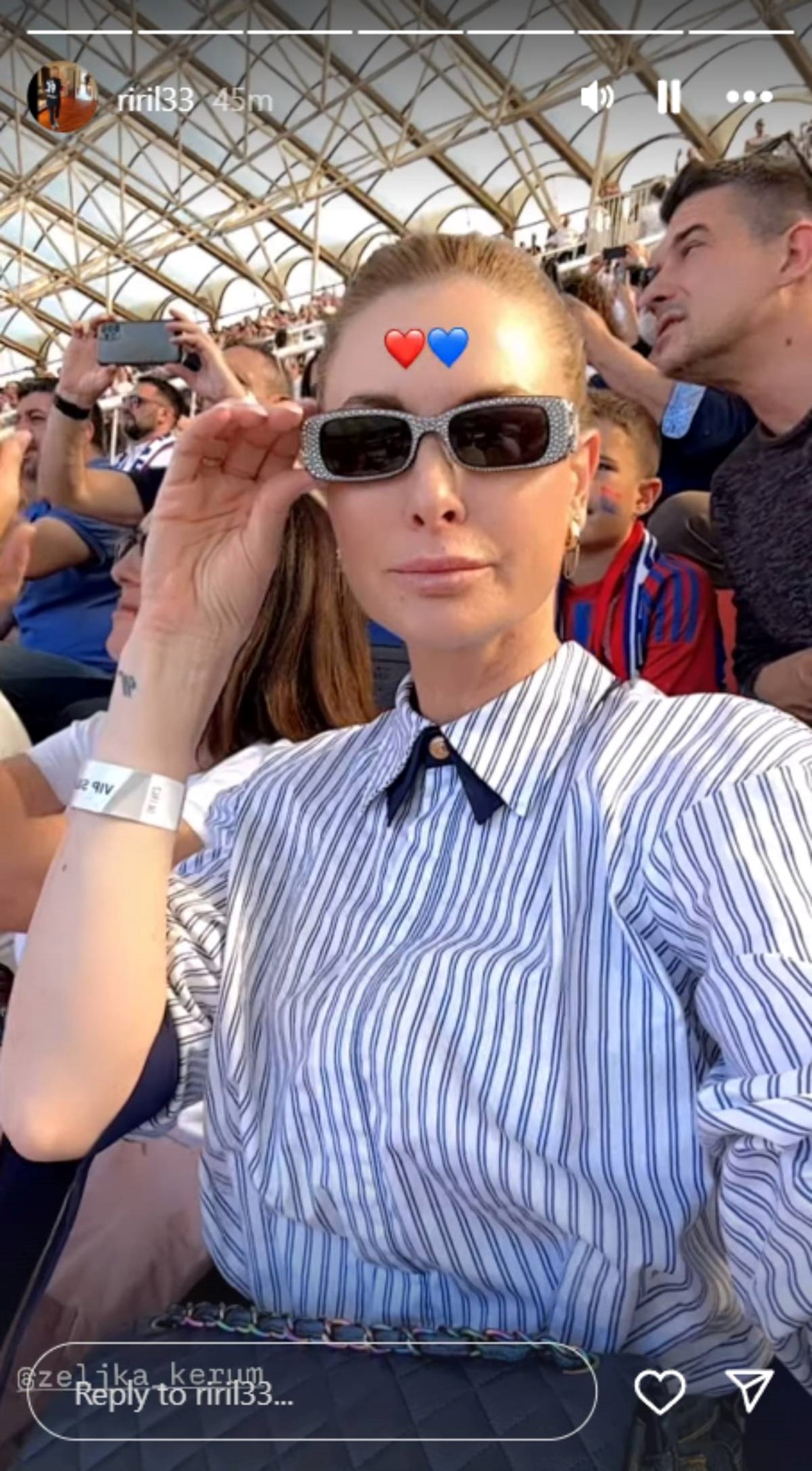 Iris je objavila snimku velike koreografije Torcide, a u pozadini se čulo: "Bogami su nadmašili sami sebe." Iris je na tribinama bila s prijateljicom, Željkom Kerum, a u rukama je držala Chanel torbicu.