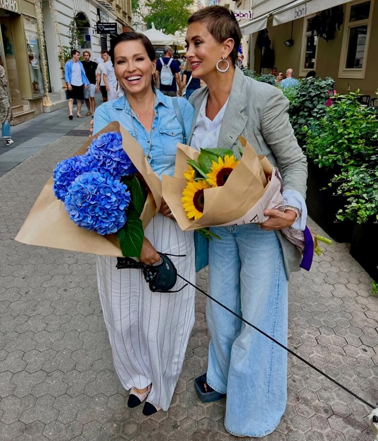 "Zagrebačkim ulicama", napisala je kratko u opisu na fotografije na kojoj su dvije žene nasmijane. Nina je prošetala u svijetloplavoj traper košulji i bijelim hlačama s tamnim prugama, dok je u ruci nosila raskošan buket plavih hortenzija.