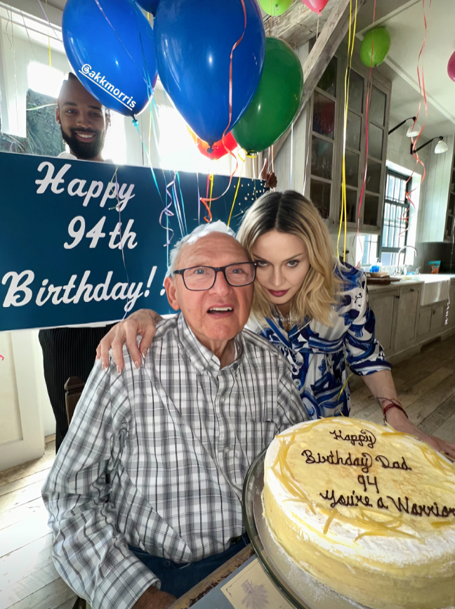 PJEVAČICA Madonna čestitala je svom ocu Silviju Cicconeu 94. rođendan. Podijelila je fotografije i snimke, a na njima se vidi njen otac kako jede tortu okružen balonima. Osim toga, Madonna je na Instagramu objavila montažu fotografija svog oca i drugih članova obitelji.