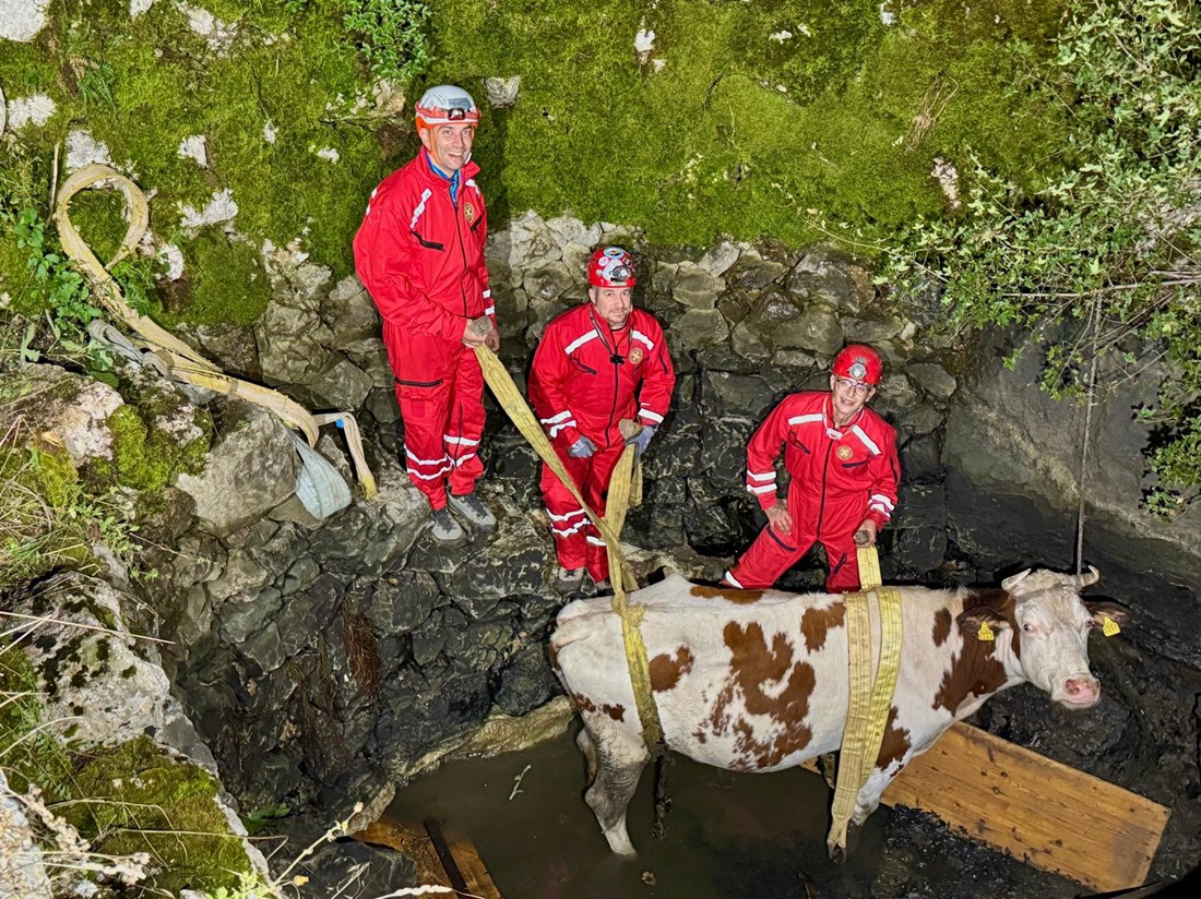 HRVATSKA gorska služba spašavanja (HGSS) iz Makarske imala je nesvakidašnju intervenciju. Krava je upala u bunar, a oni su je došli spasiti.
