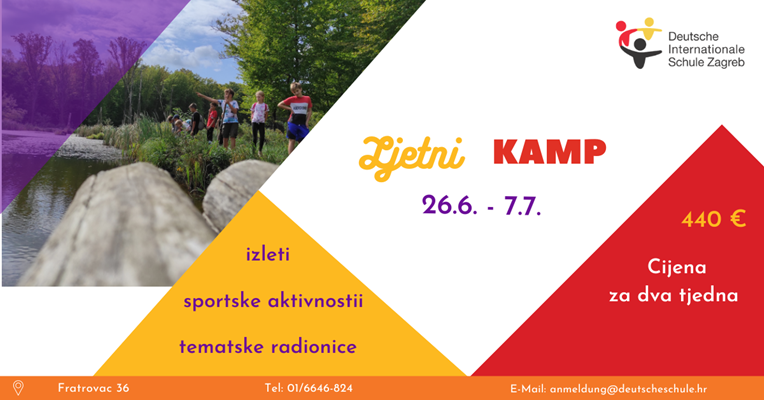 Od 26.06. do 07.07.2023. DISZ organizira ljetni kamp za sve učenike Eurocampusa i sve zainteresirane učenike od 1. do 6. razreda iz škola u Zagrebu i okolici.