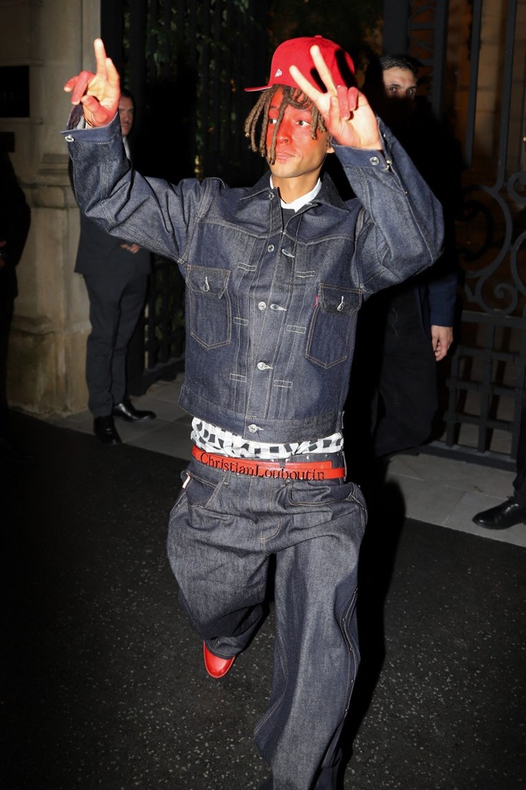 Jedan korisnik platforme X podijelio je snimku uz opis: "Sin Willa Smitha šeta Parizom s crveno obojenim licem i izloženim donjim rubljem. Jadena Smitha modna je industrija opisala kao 'modnu ikonu' i postao je novi kreativni direktor za mušku liniju Christiana Louboutina."
