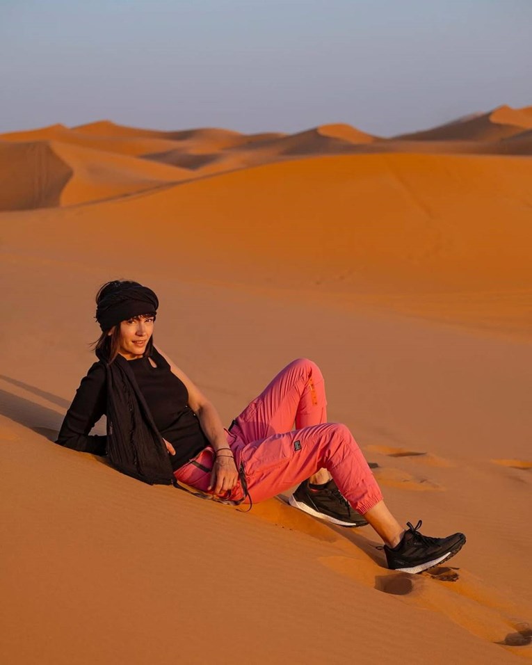 "Sunce zalazi u pustinji, ovo mi je četvrta pustinja u posljednjih godinu i pol. Magična Sahara. Trčim i smijem se, poput magneta privlačim ljude. Mladi Marokanac zašprehava me pokazujući mi svoj Instagram. Kinez me slika i dobacuje mom fotografu: 'Pa ti si kao ja, radiš kao Kinez! Svi se smijemo, valjamo po pijesku i pozdravljamo još jedan dobro potrošen dan", napisala je na kraju objave.