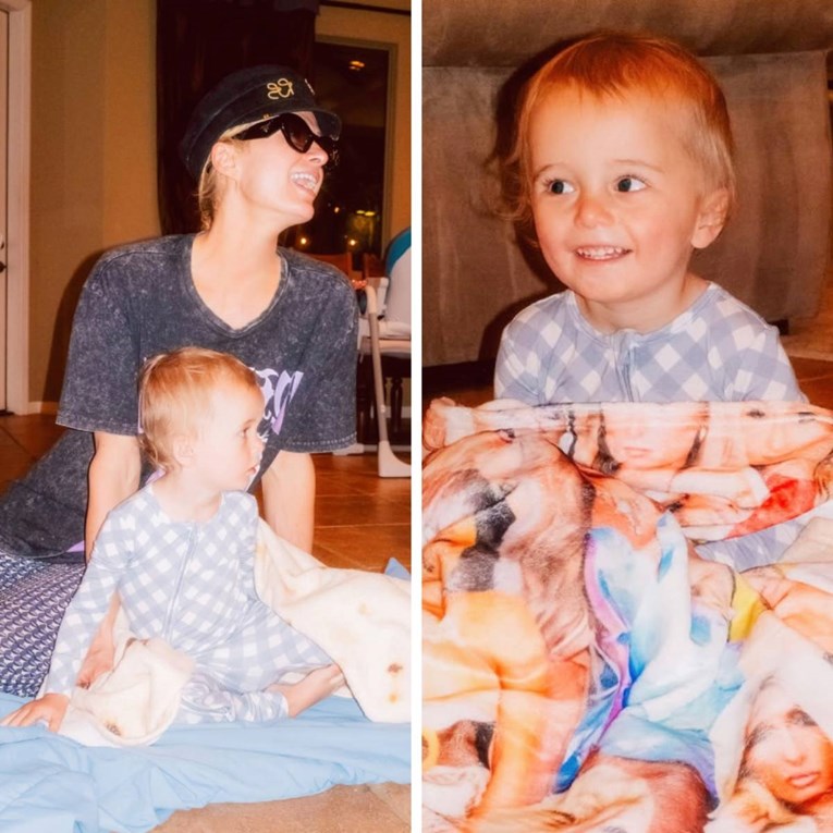 Paris je djeci poklonila deku s njezinom likom. Na snimci koju je podijelila daje sinu deku i pita ga prepoznaje li tko je na njoj. Phoenix odmah govori: "Mama."