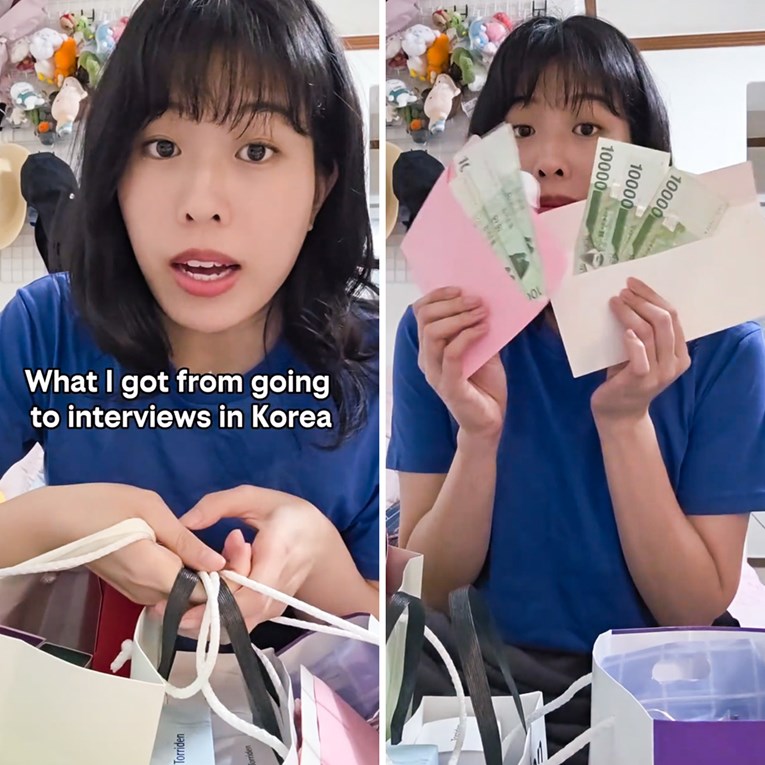 TRAŽENJE posla je samo po sebi stresan proces, a odlasci na razgovore često iziskuju dodatno vrijeme i novac. Ipak, neke tvrtke u Južnoj Koreji imaju praksu koja je oduševila internet - kandidatima za posao daju poklone i novac za prijevoz. Korisnica TikToka Just Being Chee (@cheesecakeday) postala je viralna nakon što je objavila video u kojem pokazuje što je sve dobila samo zato što se pojavila na razgovorima, a njezina je objava izazvala lavinu pozitivnih, ali i zavidnih komentara.