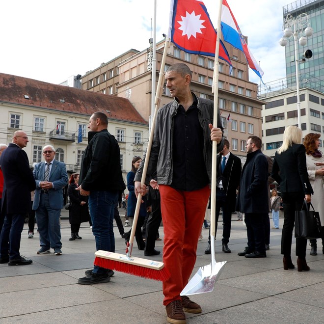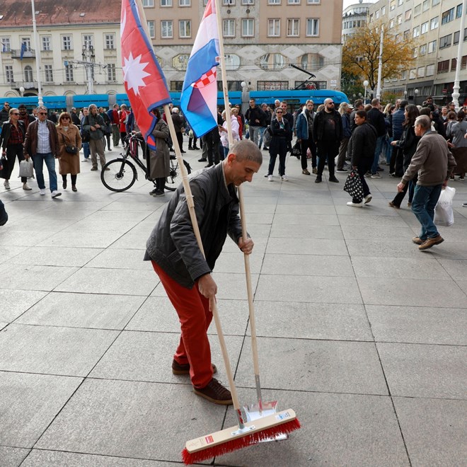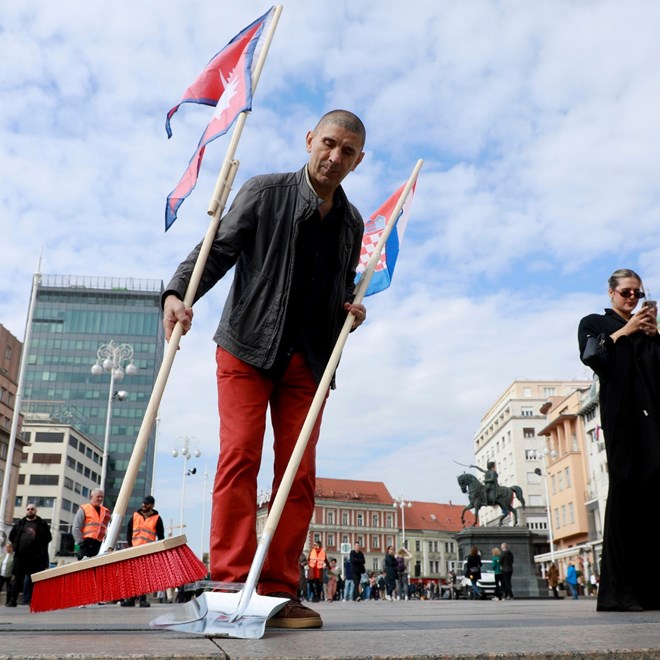 Stavio hrvatsku i nepalsku zastavu na metlu i lopaticu pa čistio Trg bana Jelačića