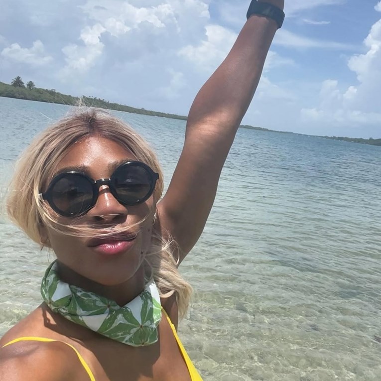 Na slikama osvajačica Grand Slama, i to 23 puta, samouvjereno pozira u vodi do koljena, noseći jednodijelni žuti kupaći kostim s izrezom na sredini. Izgled je upotpunila zelenom maramom oko vrata i crnim sunčanim naočalama.